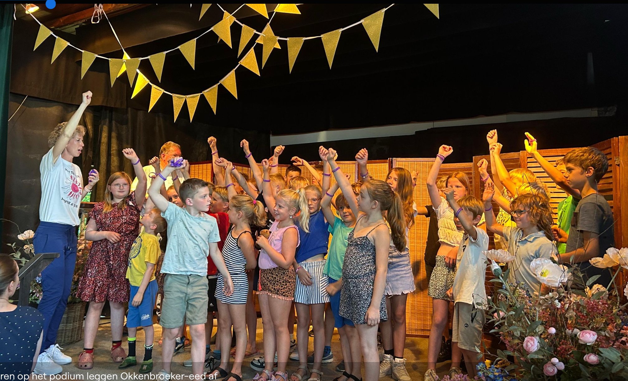 Dertig graden of niet: de zaal van het Dorpshuis zat gistermiddag vol met jongeren en ouders uit het dorp. De rode loper was uitgerold voor de ingang van het dorpshuis en kinderen tot 18 jaar legden op het podium in koor de eed 'ik zweer trouw aan Okkenbroek' af.