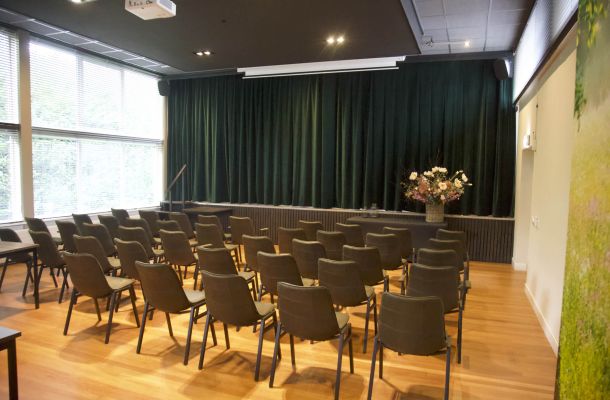 Aan de sportzaalzijde is een groot podium, welke geschikt is voor o.a. theater, muziekuitvoeringen, filmvoorstelling en toneel.